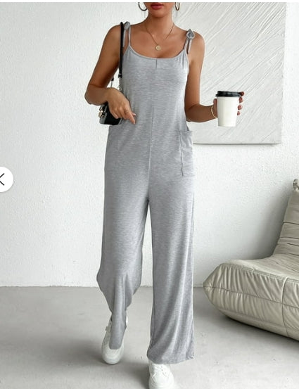 MLDRA Women's Sleeveless Jumpsuits Loose Casual Overalls Rompers Adjustable Spaghetti Straps Long Pants with Pockets