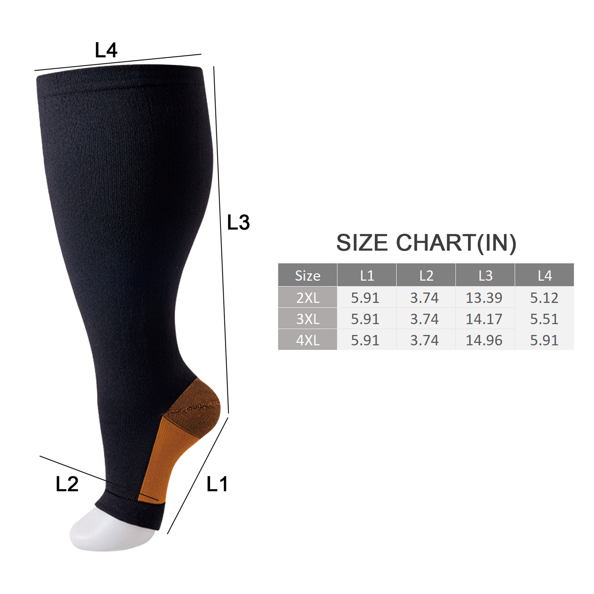 Plus Size design: Plus size socks toeless are designed for men and women with wide calf. Open toe socks women are available in 2XL, 3XL, 4XL to meet the needs of most people. Please refer to the data size chart for selection.