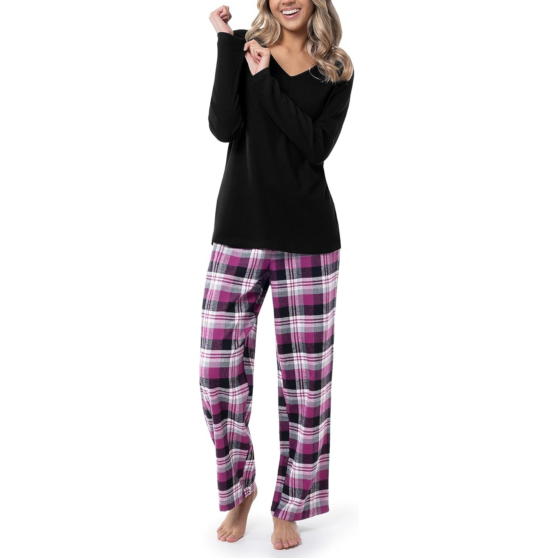 The flannel pants offer ultimate comfort with their loose fit, warm material women's pajama sets, and a wrapped elastic waistband long sleeve pajama set for women with an adjustable drawstring for a customized fit. The set comes in a classic black top paired with cozy purple waffle-patterned pajama pants, women's sleepwear making it both stylish and comfortable. Whether you're winding down after a long day or enjoying a weekend morning, cotton lounge sets for women is a must-have for ultimate relaxation.