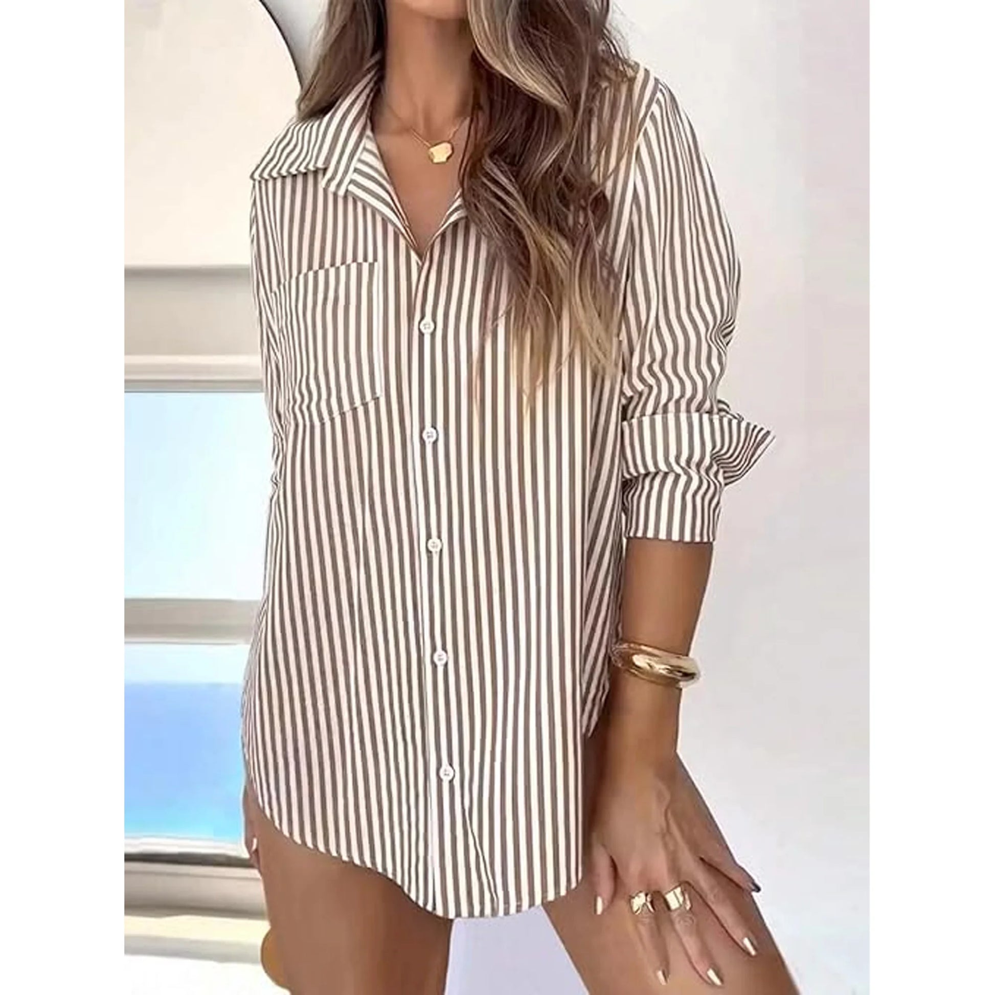 Perfect for Any Occasion: Ideal for office, work, business meetings, casual outings, beach holidays, and parties. This dress shirts for women can be worn alone or as a jacket, making it a versatile addition to your wardrobe.