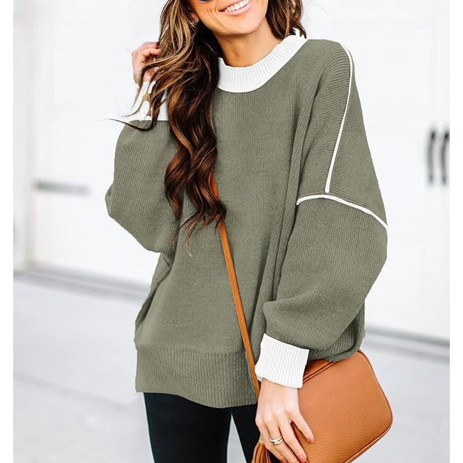 SOMER Womens Oversized Sweaters Fall Fashion Clothes Trendy Batwing Sleeve Colorblock Striped Knit Pullover Tops