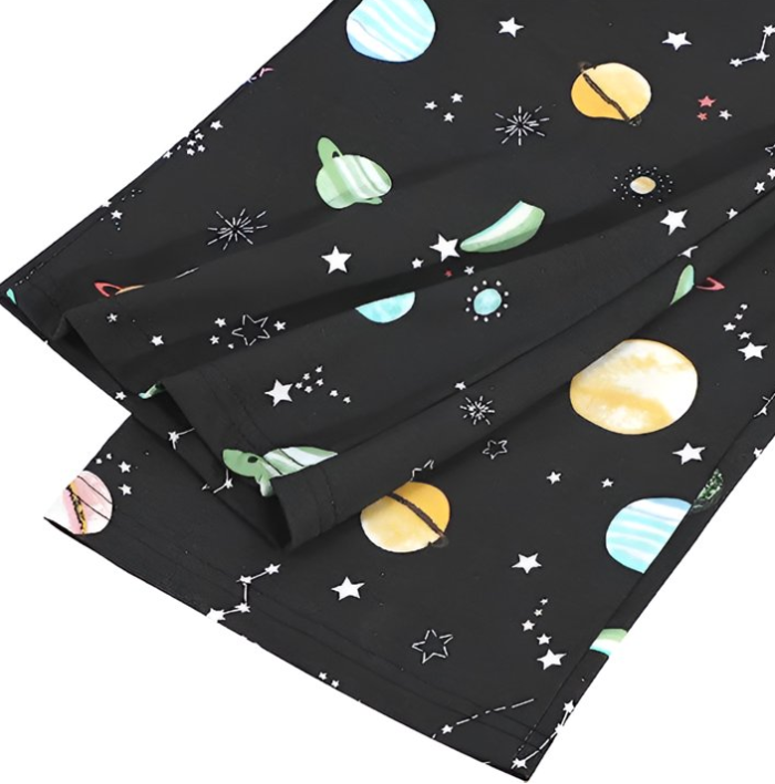 【Features】: This cute womens pajamas sets featuring a V-neck tee, short sleeve pajamas and prints, elastic waistband and drawstring capri pajama bottoms, this two piece pajama set will give you a pleasant sleep experience.